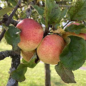 Erntezeit und Lagerung: Bereits ab Ende Juli bis August ist dieser Apfel erntereif, sollte jedoch sofort verzehrt werden und ist kaum länger wie ein bis zwei Wochen lagerfähig.